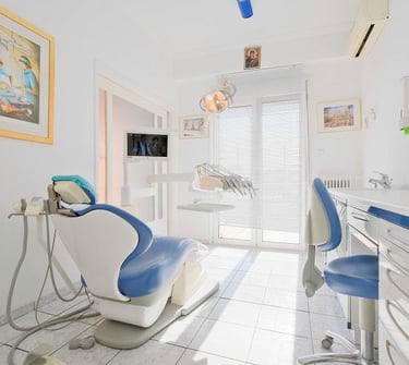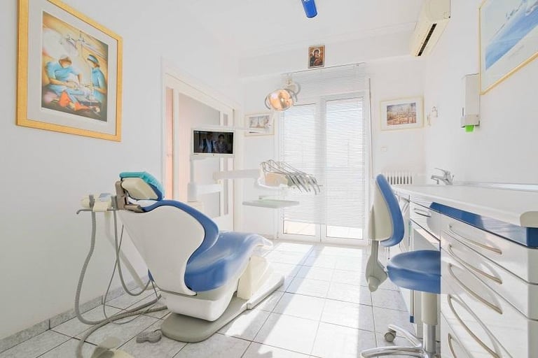 Το ιατρείο, που βρίσκεται στην οδό Θησέως 25 στην εμπορική περιοχή του Αμαρουσίου Αττικής, πολύ κοντά στο σταθμό ΗΣΑΠ και απέναντι από το ΙΚΑ είναι ένας χώρος με σύγχρονο οδοντιατρικό εξοπλισμό και πολύ υψηλού επιπέδου κανόνες υγιεινής. Εδώ προσφέρονται οι πιο σύγχρονες θεραπείες επανορθωτικής, αισθητικής οδοντιατρικής και εμφυτευματολογίας με τα πιο ποιοτικά θεραπευτικά υλικά που κυκλοφορούν διεθνώς.